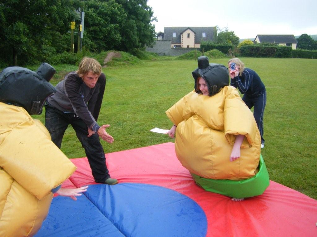 This is hilarious and great fun, getting up is the hardest part in the huge inflatable suits!